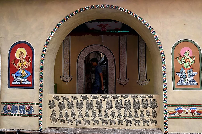 Madhubani paintings at the Ballygunj Cultural Puja pandal | Sandipan Chatterjee/Outlook Photos