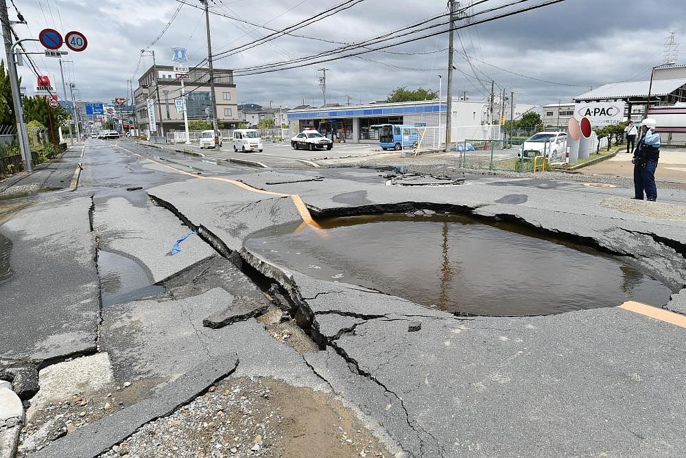One victim was a 9-year-old girl who was knocked down by a concrete wall at her elementary school as she walked by. A man in his 80s died in the collapse of a concrete wall in Osaka city. An 84-year-old man in nearby Ibaraki died after a bookshelf fell on top of him at home, according to city officials.