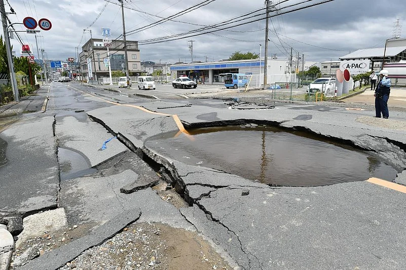 The quake knocked over walls, broke windows and set off scattered building fires. It toppled book shelves in homes and scattered goods on shop floors. It also cracked roads and broke water pipes, leaving homes without water.