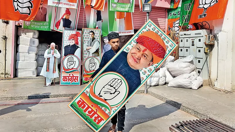 At the opposite end of the political spectrum, the BJP cadre and leaders feel that Gehlot’s schemes have been nothing less than an eye-wash. “The schemes have been refurbished versions of what the BJP had started at the state and centre levels,” says Balwant Singh, a Rajput voter from Gehlot’s Saradarpur constituency. He counters pro-Congress views, citing the cylinder subsidy as a modified BJP scheme. A section of the voters, confident of a Congress victory, however, cite the dominance of non-Rajput settlements in the area as the reason.