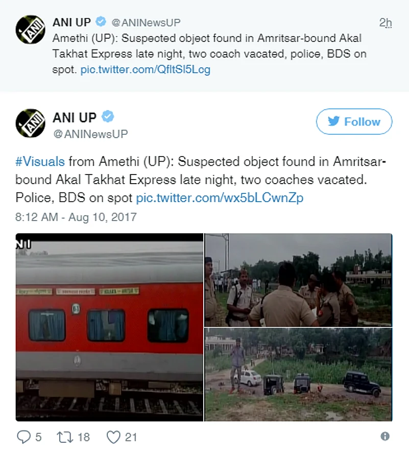 News agency ANI reported that the train was travelling from Kolkata to Amritsar was stopped in Amethi, Uttar Pradesh, after one of the passengers spotted a suspicious object near the wash basin in one of the two-tier coaches.