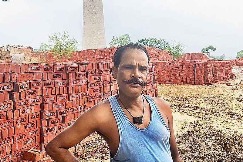 Darkness falls on Rajauli village, but for Raju Kushwaha there is no difference between the scorching sun and the blazing brick kiln. While the village’s residents enjoy the cool air, the 45-year-old’s sweat-drenched body is hard at work at the local Bhatta.