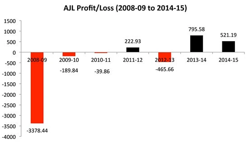 Details of profit and loss (in Rs. Lacs) are below. Please note that after AJL’s debt of Rs. 90 crores was extinguished in February 2011, AJL was able to declare its first profit in several years in 2011-12 and came into the black from the red. This was only as a result of the financial revival plan of AJL as conceived by the Congress Party.