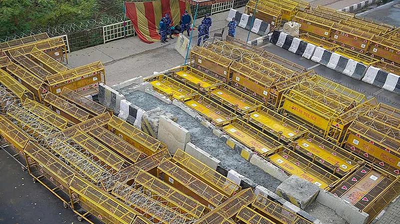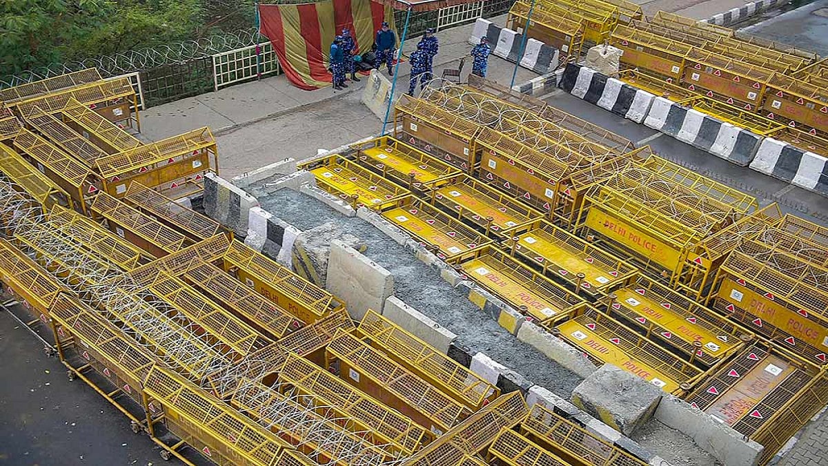 Iron nails, which were studded on roads around the protest site, were being removed, a move drawing jibes by protestors against the stringent security measures