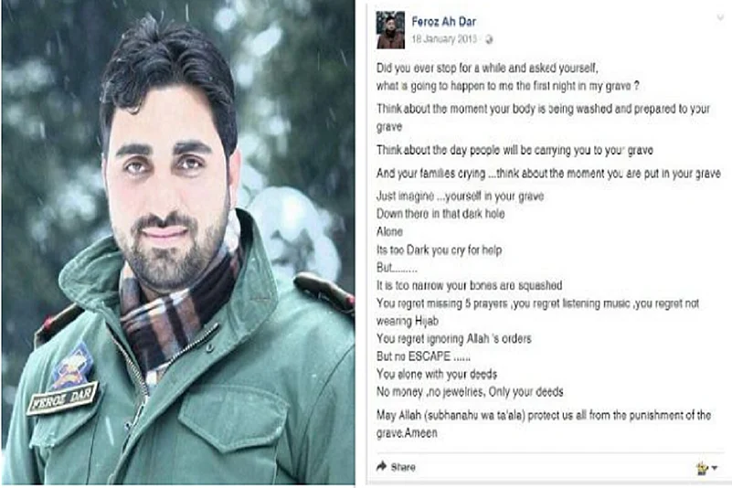 A 3-year-old Facebook post from slain Station House Officer(SHO) Feroz Ahmed Dar's timeline, lamenting about death and Kashmir’s turmoil, is doing the rounds on the social media.