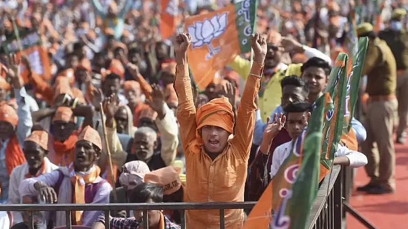 Most exit polls have predicted a big win for the BJP in the 2022 UP Assembly elections, barring two (Deshbandhu and 4 PM), which have kindled hope for the Samajwadi Party chief Akhilesh Yadav-led coalition in the state, which includes Rashtriya Lok Dal and Suheldev Bharatiya Samaj Party. In the 403-member Assembly, the BJP has been projected to retain power with a good majority, but with fewer seats than the 2017 landslide (312 seats). In the Saffron citadel Gorakhpur, while CM Yogi Adityanath is almost certain to have a clear lead in the Urban area, BJP may benefit from the fragmentation among the opposition parties, their division along caste lines, and deeply ingrained polarization on the other eight seats in the Purvanchal district.