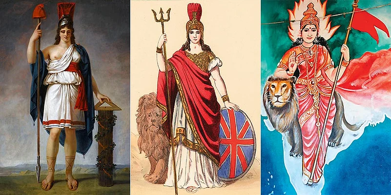Embodying the patriot’s object of national loyalty in a mythic woman was a European phenomenon—representations of (left to right) the French Republic and Britannia influenced the visualisation of Mother India