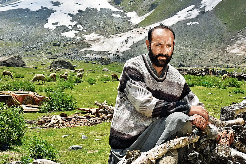 Thajiwas is dear to Rashid. “This place was sacred. I was born in these meadows. My father, Abdul Razak, and my grandfather, Abdul Aziz, were also shepherds. We used to bring around 5,000 sheep here, but now everything has changed,” he says, leaning against his behak.
