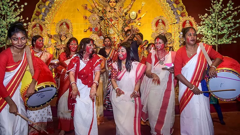 The ‘Sindoor Khela’ tradition is held on the last day of Durga Puja—‘Vijayadashami’ across the country.