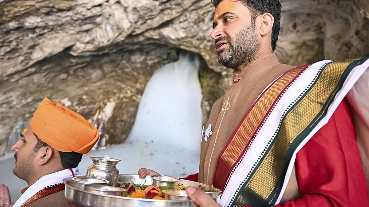 Glimpses Of The 'Pratham Pooja' At Amarnath Cave Shrine In J&K's Anantnag