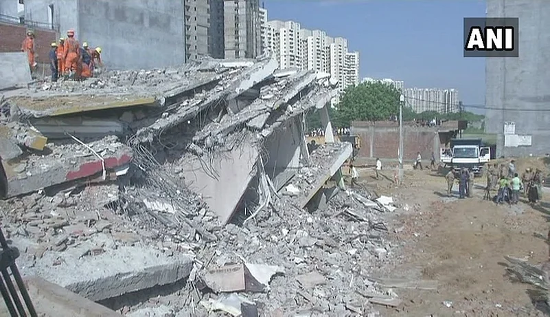 An under-construction building collapsed in Greater Noida’s Shah Beri village on Tuesday evening. Three bodies have been retrieved by the National Disaster Response Force (NDRF) teams.