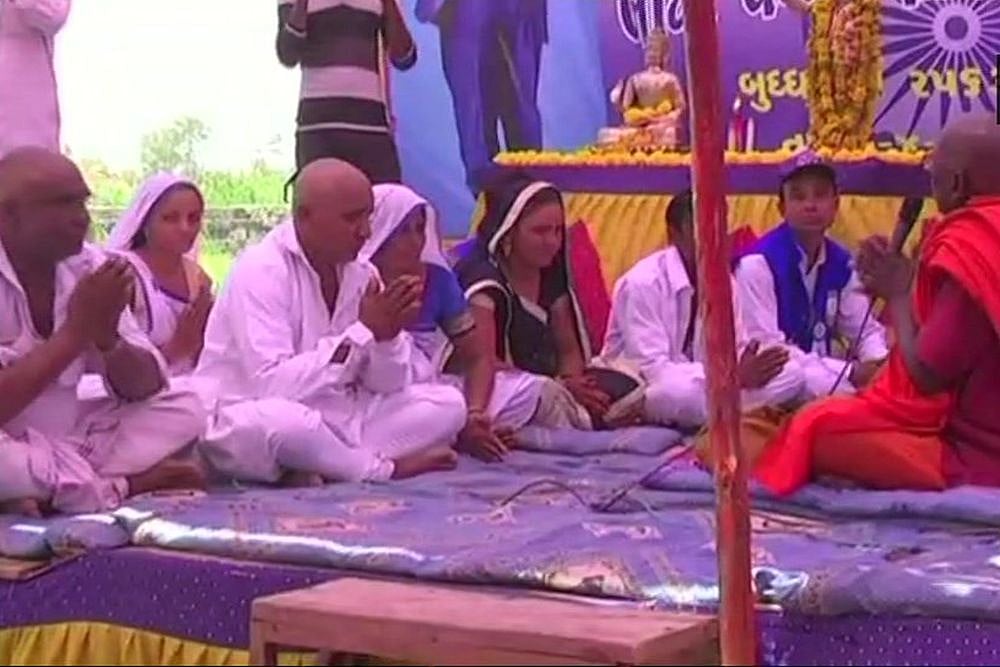 A Dalit family, whose four members were allegedly flogged by cow vigilantes in Una tehsil in Gujarat's Gir Somnath district in 2016, embraced Buddhism on Sunday at an event organised in Mota Samadhiyala village.