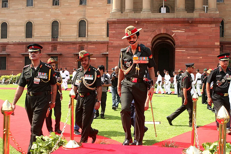 In a career spanning four decades, Gen Suhag has been a company commander in Operation Pawan in Sri Lanka, commanded a Rashtriya Rifles battalion in Nagaland, besides commanding an infantry brigade and a mountain division in Jammu & Kashmir, and 3 Corps in Eastern Command. And he has courted controversies. Even his appointment as chief of army staff (one of the last executive decisions of the outgoing UPA regime) made news for all the wrong reasons. Former chief of army staff and now minister of state foreign affairs, Gen V.K. Singh, had made an infamous tweet in June 2014 blatantly accusing Lt Gen Suhag of protecting criminals in uniform. “If unit kills innocents, does dacoity and then head of organisation tries to protect them, should he not be blamed? Criminals should go free!!!” (sic).