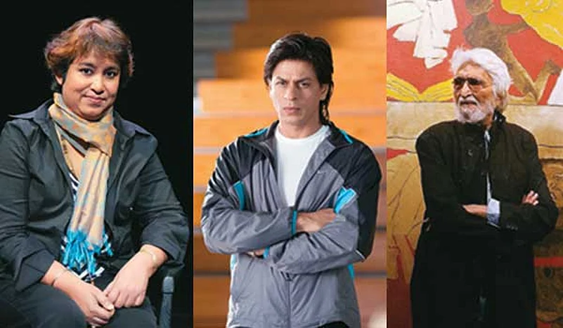 Taslima Nasreen is damned by Muslim fundamentalists. M.F. Husain is damned by Hindu bigots. Shahrukh Khan is targeted by a xenophobic regional outfit looking for quick publicity. A painter, a writer, an actor. Three very different individuals tied by a common bond, one that’s been a magnet for recent controversies. The liberal Muslim seems besieged, and the three figures above reinforce the fact of their vulnerability. It’s often a “damned if you do/damned if you don’t” situation.
