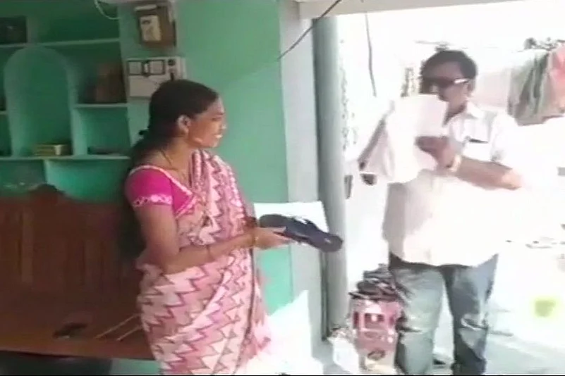 Akula Hanumanth, an Independent candidate from Koratla, Telangana handed out slippers to voters, asking them to hit him if he fails to deliver on promises if he is elected.