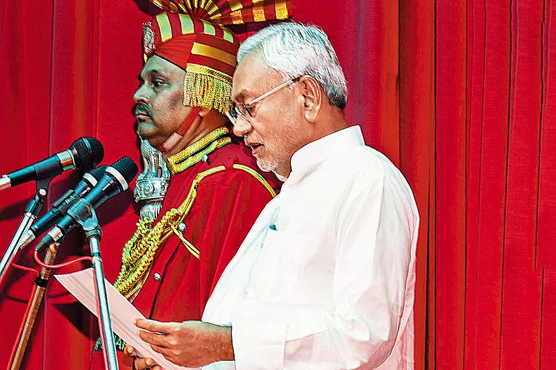 The frequent flip-flops of the JDU plunged his supporters into a dilemma. Ranjit Mahato, a dedicated JDU voter from Nalanda district, says, “When Nitish Kumar emerged in the political arena, he was the only Kurmi leader of that stature. I am also a Kurmi, so I almost became Nitish Kumar’s fan and I admire him. But his frequent change of alliance hurts supporters like us. When the JDU goes with the BJP, Yadavs poke me and when it forms an alliance with the RJD, upper-caste people tease me. We would like the JDU to not go into any alliance.”