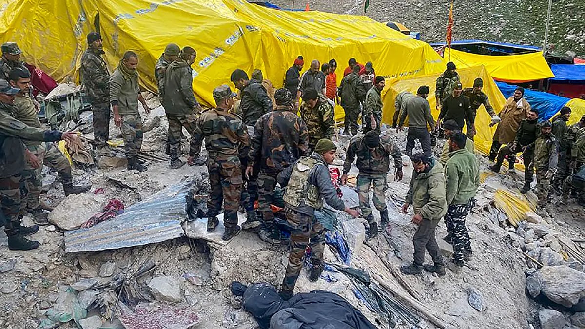 Besides sniffer dogs, the rescuers are also using hand-held thermal imagers and other sophisticated devices to check for any sign of life under the mounds of debris. Meanwhile, the Army has pressed heavy machinery into service in order to restore the route to the cave shrine at the earliest.