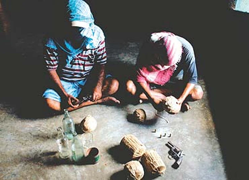 Early next morning, there is a call. It’s Nooruddin. He directs us to Bhaduriapara where he has established contact with "friends" who can get us the RDX. "What do you want to do with it (RDX)?" asks Nooruddin in chaste Bengali as he quietly surveys us. We offer no answer and he doesn’t seem too keen to know our motives. The diminutive Nooruddin, who lost a hand after a bomb he was smuggling exploded, moves on to the next question—do we have the Rs 20,000 in cash for the RDX? When we answer in the affirmative, Noor gets busy on his cellphone. "The deal’s set for 250 grams," he says. But we need to be careful with the RDX. "Don’t mix the powder with the chemicals they give you," he cautions.