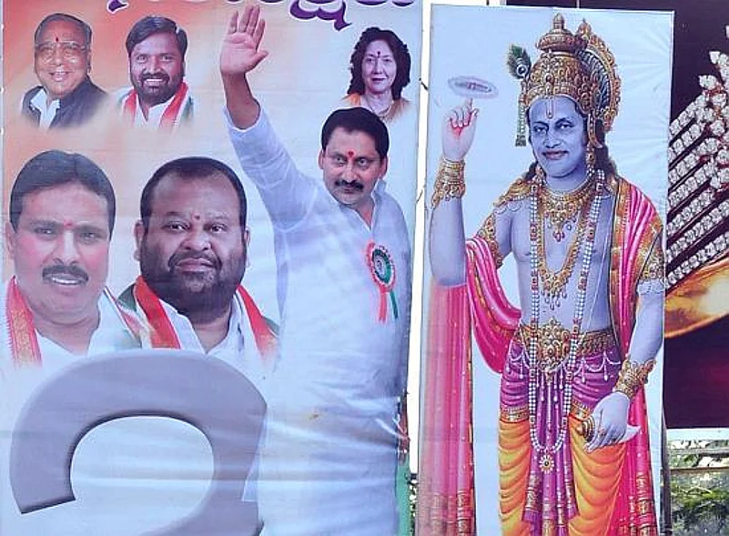 The CM, however, reportedly told officials to take down a hoarding on Necklace Road which portrayed him as Lord Krishna. While the poster showing a blue-skinned Kiran Kumar was eye-catching, the CM was apparently worried that this would give the MIM further ammunition to label him as saffron. So the GHMC authorities moved quickly and took it down.