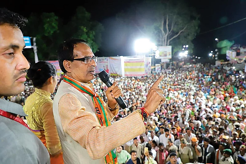 For the last two months, Chouhan has been intermittently criss-crossing the state’s 51 districts atop a high-tech van in the course of his Jan Ashirwad Yatra, addressing numerous roadside rallies. The Congress—the principal opposition party—hopes to unseat him this time, but the chief minister shows little signs of nervousness. As he set off for another day of canvassing from Tendukheda—a speck of a town some 150 km from Jabalpur—Chouhan spoke to Outlook Editor Ruben Banerjee on how confident he was about being re-elected and what his roadmap for governance was. Excerpts: