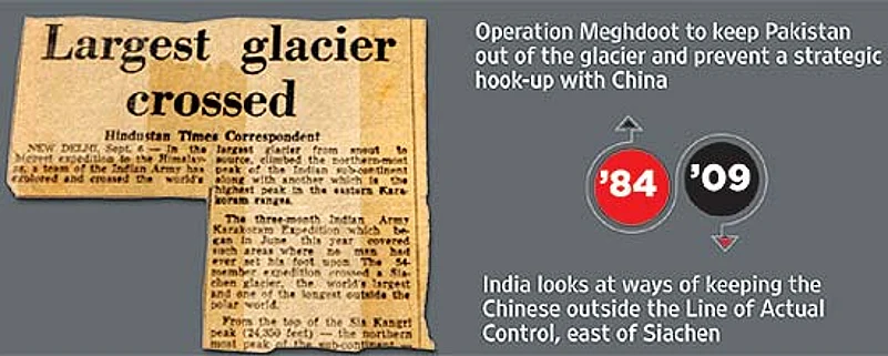 Bound to each other by thick ropes, trekking across the harsh terrain for weeks on end, Col Kumar became the first Indian to climb the Sia Kangri peak, which offers a majestic view of the Siachen glacier. But there was also a surprise awaiting the team—a Japanese mountain expedition facilitated by the Pakistan military had a presence there. After a “sit-rep” (situational report) was dispatched to the army headquarters, the team went from peak to peak, staying ahead of snow avalanches to chart the area.