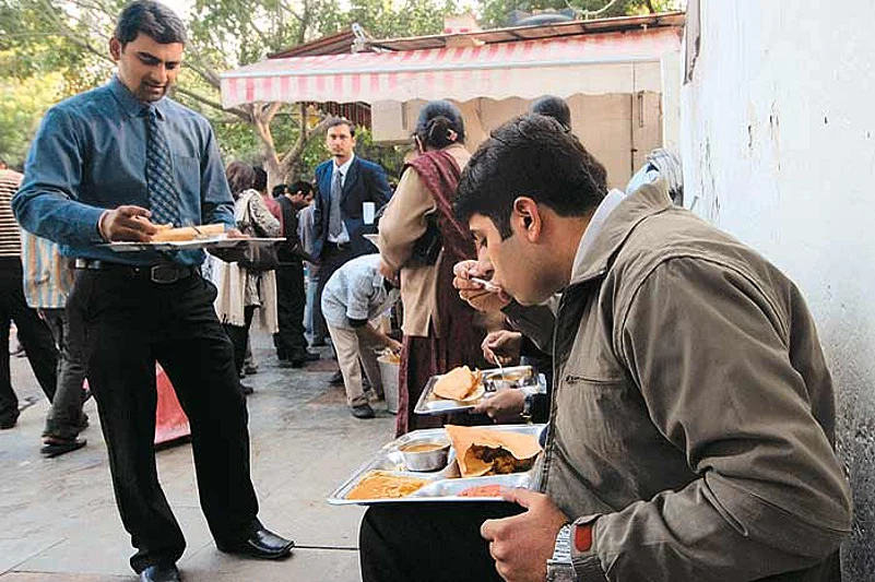 For a spot where a few hundred were fasting for a cause, the most striking and paradoxical sight was of as many feasting on the side. In those four days of fighting for the Lokpal Bill, there was a frenzied consumption of idli, vada and masala dosa that flew briskly off the counter of South India Snacks Centre on Jantar Mantar Road, Delhi.