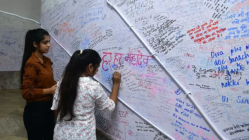 A wall at Radha Krishna Mandir in Rajasthan's Kota, the nation's coaching centre hub, has turned into a Wall of Prayers. Students aspiring to be engineers and doctors turn to the wall to write their aspirations, hopes, prayers, and fears, often with the relief of anonymity. For a town plagued by suicides of students, who study under stress of entrance exams and pressure from peers and families, the Wall of Prayers can very well be part of their coping mechanism, like a diary in the premises of the Gods.