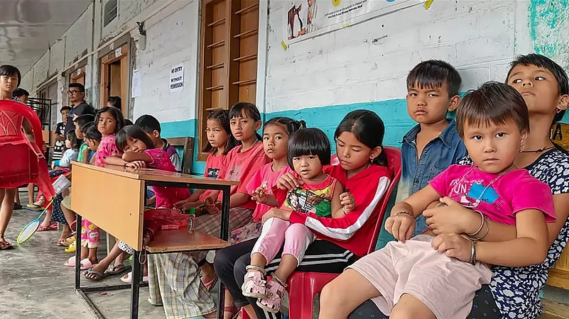 Thousands of Manipur residents were displaced due to the ongoing ethnic violence in the state and they took shelter in relief camps set up in different places across the state and neighbouring states. A relief camp at Lamsang in Imphal West district is exclusively set up for children who are displaced and away from their parents who are guarding their villages.