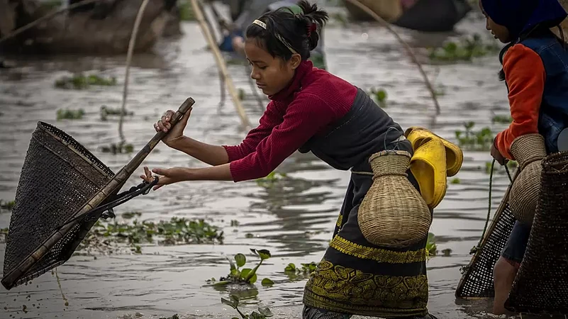 People in Assam mark the end of the harvest season with Bhogali Bihu. Community fishing and community feasts are traditionally part of the Bhogali Bihu celebrations. It's a three-day festival.