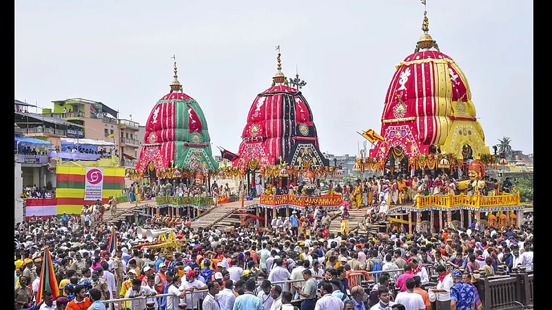 Devotees on Friday participated in Rath Yatra festival at Odisha's Puri for the first time since 2020. The Rath Yatra festival was held without devotees in 2020 and 2021 because of Covid-19 pandemic. Officials expect the number of devotees in Puri today would touch 10 lakh, according to PTI. In the festival, idols of Hindu God Jagannath, his brother Balabhadra, and sister Subhadra are taken out in a grand procession in specially made chariots called —raths— that are pulled by thousands of devotees.