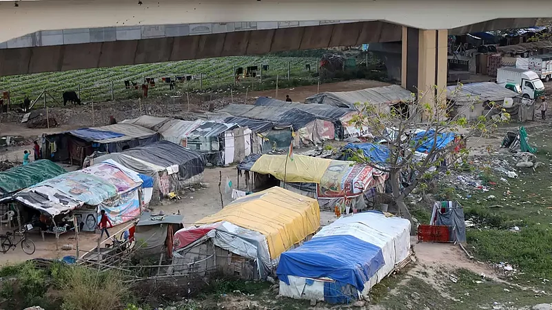 Baiya Pawar, a woman of indeterminate age, sits under a flyover in Navi Mumbai. She is surrounded by three children — the eldest being four-years-old. Baiya, who hails from Beed district in the drought-hit Marathwada region of Maharashtra, came to live beneath the flyover about three months ago. They belong to the Phasi Pardhi tribe, a community on the last rung of the social ladder. Her husband Dhimaji is in some jail somewhere. Arrested on charges of robbery —which his wife calls false— by the local police, Baiya tried to find him. The police did not reveal the police post they had jailed him in.