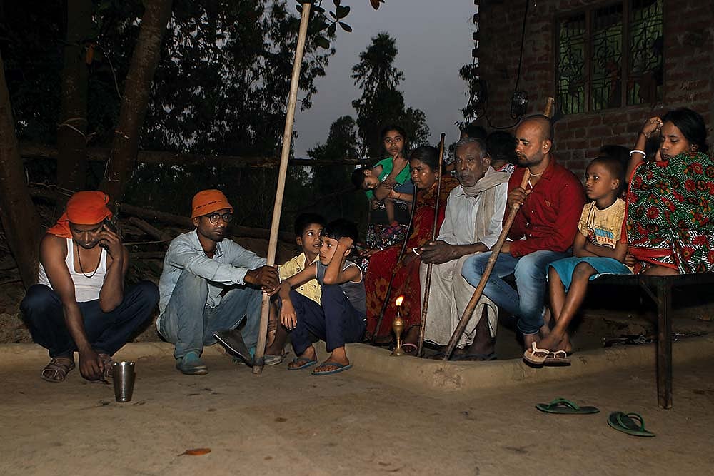 These days, with fear stalking their ranks, villagers wrap up their day before nightfall and stay indoors. Buffaloes, hens, ducks, all are locked up inside. Three days ago, a street dog in the village went missing, they whisper fearfully. The men have all but stopped working in the fields. The children have stopped playing outside. “I am telling you, it’s a man-eater. Even when we are in a group, we are scared. The tiger keeps waiting in the grass and the moment someone strays from the group, it attacks,” says Prasanjit Mandal (17). Night brings its own terrors—so scared are those who live alone that they prefer to sleep over at others’ houses.