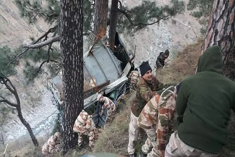 The vehicle was part of a Jammu-bound convoy and the accident occurred near Khuni Nallah in Ramban district around 8.45 am, a police officer said.