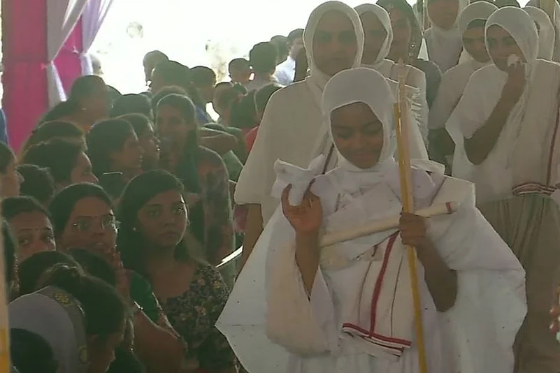 The girl, Khushi Shah, isn't the only one from her family to become a Jain monk. She said, "When I was a child, there were four people from my family who had chosen this path to attain peace. According to Simandhar Swami ji, one should renounce worldly pleasure at the age of 8. Now I'm 12-years-old. So that's the reason why I want to take Diksha (initiation ceremony) at the earliest."