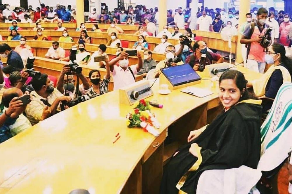 A college student and a CPI-M member, she was administered the oath of office by collector Navjot Khosa at the corporation council hall.