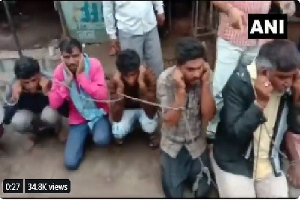 A video of the purported incident showed several villagers carrying sticks and forcing the alleged cattle-transporters to do sit-ups holding their ears amid cries of "Gau Mata Ki Jai".