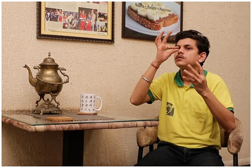 (Sooraj Thakur learnt ISL at school but he says schools for deaf children often fail to teach them any real vocational skills)