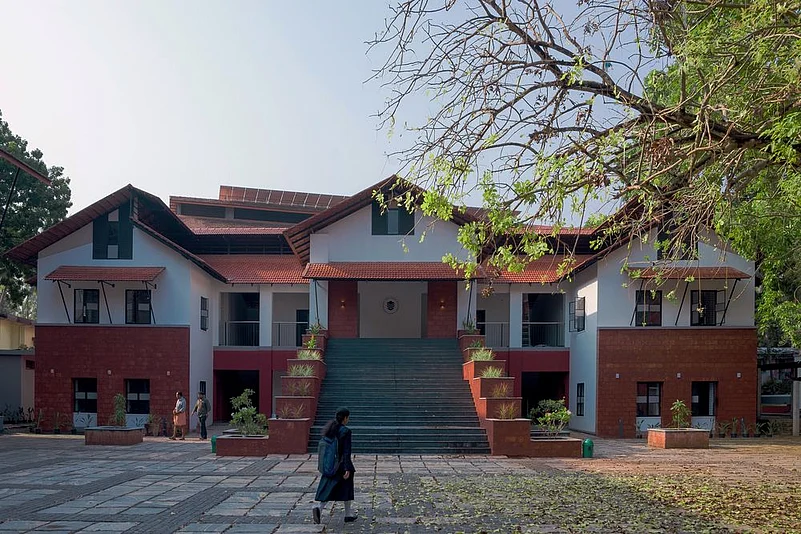 The high-ceilinged, well-ventilated, sunlit classrooms and labs, the ramps that lead to every floor and the auditorium for the physically challenged, the multiple open squares and seating areas, the green walls and library gardens all create comfortable spaces for friendly and intellectual student-student and student-teacher interactions.