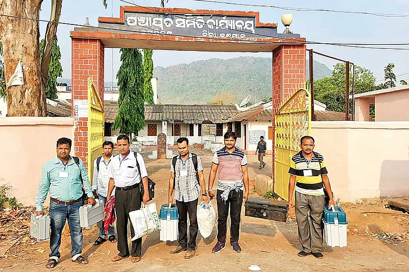 In both Kandhamal and Malkangiri, the poll parties had no choice but to travel on foot due to the looming Maoist threat. “Just as voting was coming to an end, we received intelligence inputs that the rebels had laid landmines on the polling party’s return path,” says Malkangiri SP Jagmohan Meena. “Going in vehicles would have been suicidal. The officials would have been sitting ducks for Maoists. Since it was already getting dark, requisitioning a helicopter to ferry them was also out of the question. So we had to make them walk through hills under tight security cover.”