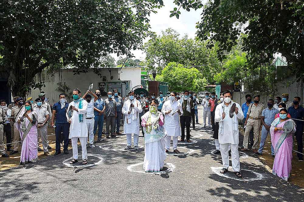 Huge police contingents were deployed at the protest site, a stone's throw from the official residence of Chief Minister Nitish Kumar, and also the house of state health minister Mangal Pandey, a senior BJP leader who has been drawing flak from the opposition for alleged poor handling of the pandemic.