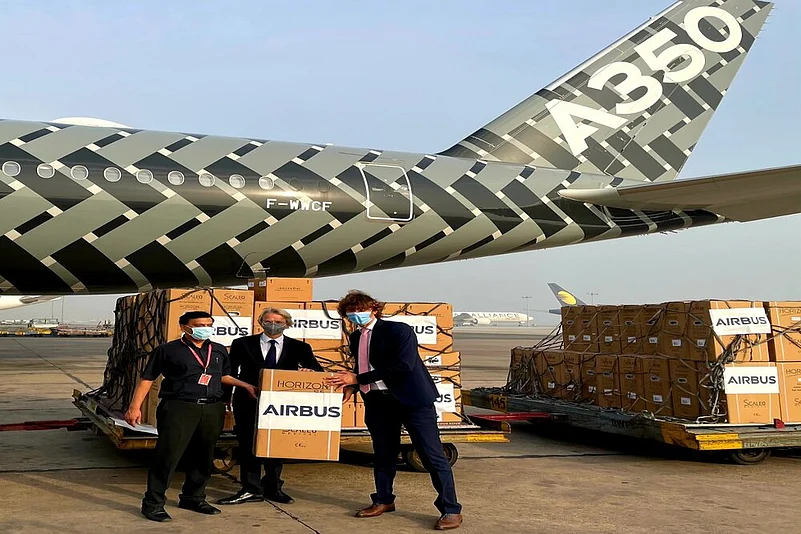 An official statement issued by Airbus has said an A350 test aircraft delivered a part of the consignment comprising oxygen concentrators and ventilators from Airbus’ headquarters in Toulouse, France, on Wednesday. The remaining materials are sourced from India. The latest contribution comprises two oxygen generator plants, 250 oxygen concentrators, 30 ventilators, 100 BPAP breathing machines and four ICUs-on-wheels.