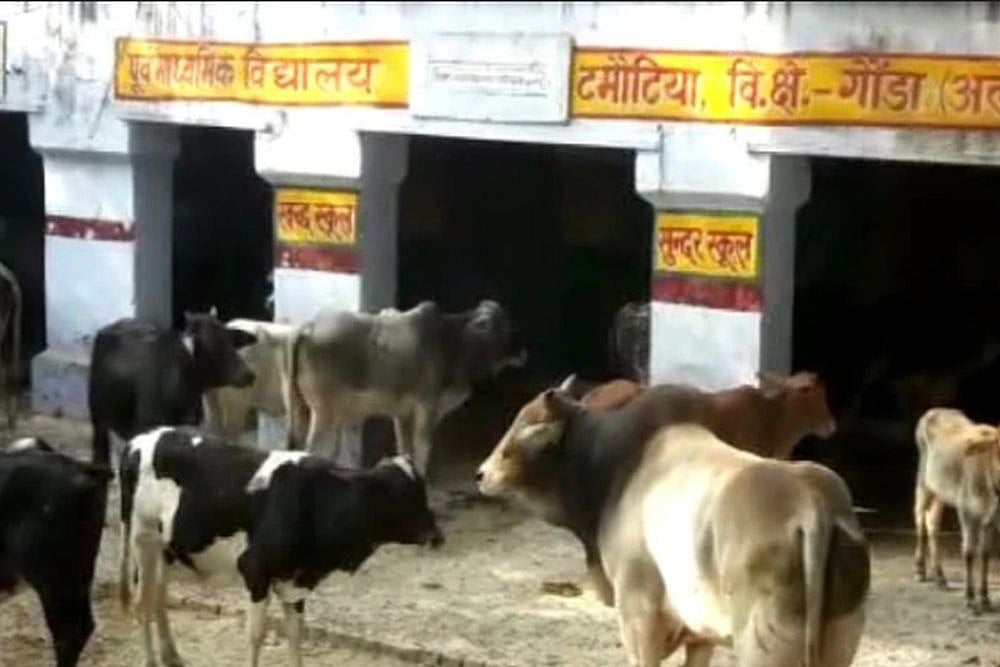 Students and teachers of around a government school and primary health centre in Gorai area in Aligarh were forced to stay out of their classrooms after the villagers herded stray cows and bulls inside the school compounds. Later, the schools were closed by the administration and the children went back to their homes.