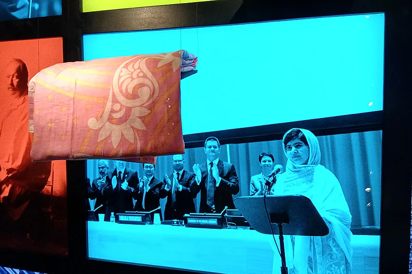 Malala Yousufzai's shawl that she wore while delivering her speech in the United Nations General Assembly (UNGA). (Photo: Mirza Arif Beg)