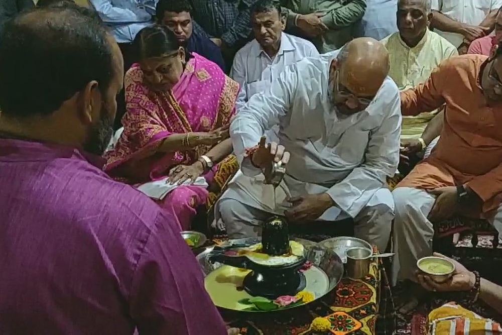 BJP president Amit Shah Saturday offered prayers at famous Somnath temple in Gujarat along with his family members.