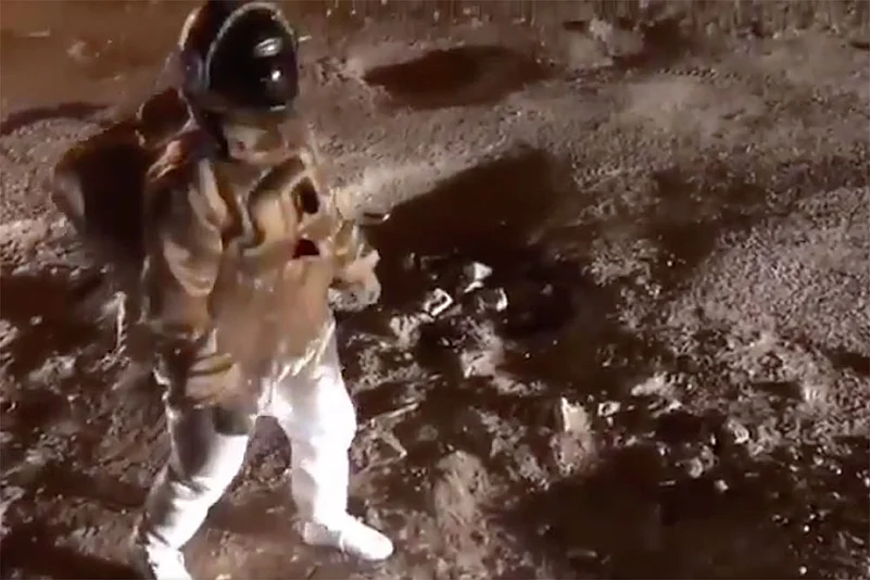 A video by a Bengaluru-based artist Baadal Nanjundaswamy, showing a man dressed as an astronaut walking on potholes in the city shown as the Moon's surface has gone viral on social media.