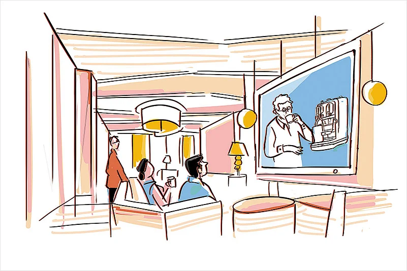 With the onset of the pandemic, however, how was an ideal guest to behave and appear? Did they expect me to leave my room and even come down at all? What kind of ideal guest would I be, if I stayed cooped up in my room, completely quarantined? The hotel, however, took the decision that at least an ideal guest, if no one else, should socially distance, for him to serve some sort of ideal. The management initially decided to circulate photographs of me—via their social media pages and television monitors located at different spots in the hotel—enjoying the comforts of my room, making coffee in the new Nespresso machine they had recently installed. The refrigerator was complete with food and drink that had a shelf life of at least a year; soon, however, these photographs failed to inspire, as other guests began to notice that no matter what pleasant activity an ideal guest was engaged in, he was always alone.