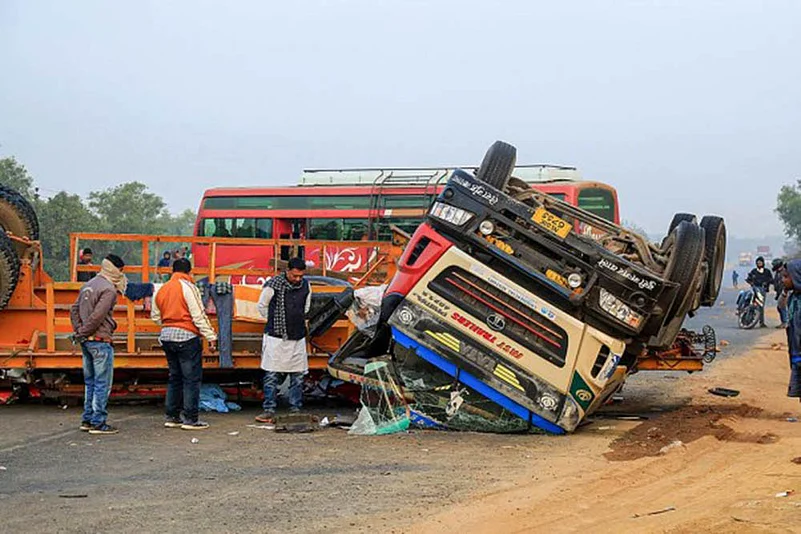Preliminary investigation suggests that the driver of the bus might have lost control and the vehicle first crashed against the road median and then rolled to the other side of the road hitting a lorry, officials said.