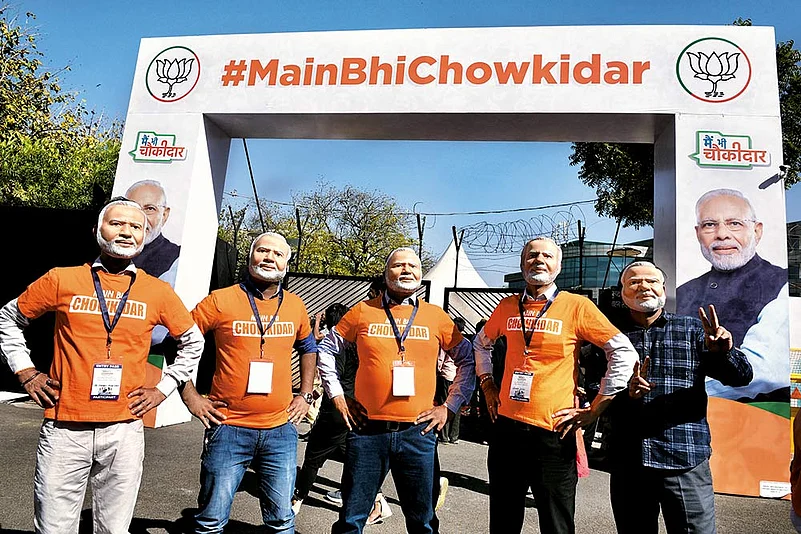 “Political campaigns do not work in isolation. There are a few key elements that such campaigns must always be complimented with. The image of the person leading a political party, the narrative he is trying to set and its resonance with the masses—these are the three most important factors that have to be finalised first. The campaign is then designed around these and a dissemination blueprint is put in place. Days of having a single slogan are now history,” an advertising honcho who has been part of several BJP campaigns since 2014 tells Outlook.
