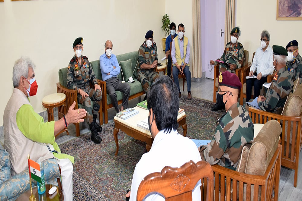 According to a government spokesperson, J&K Lieutenant Governor Manoj Sinha, held a meeting with GOC-in-C, Northern Command, Lieutenant General Y K Joshi and other senior Army officials regarding the current pandemic situation in the UT at the Raj Bhavan on Friday.