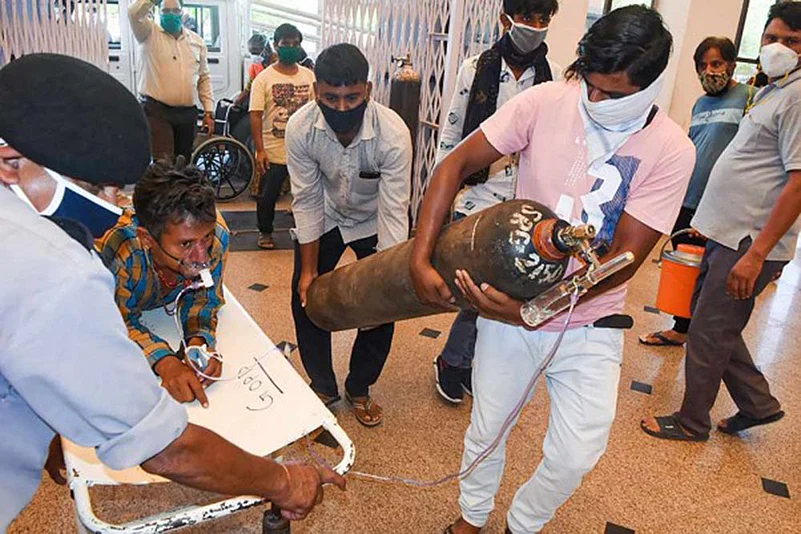 While thousands of patients are in hospitals, many are unable to find a bed or an oxygen supply. The government has also appointed a nodal officer in each district to ensure the supply of beds and oxygen. Speaking to Outlook, Iqbal Khan, additional district magistrate, Jaipur, who is the nodal officer for oxygen, said, "From the past one-week, oxygen demand in hospitals has soared. We are ensuring the supply to government as well as the private hospitals but with the increased usage of ventilators, we are barely managing. In such dire situations, it has become difficult for us to refill the supply in the private houses. We require much more than what we are getting at the moment."